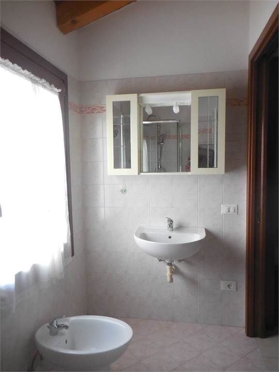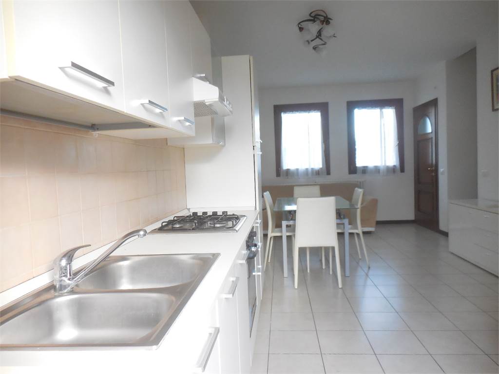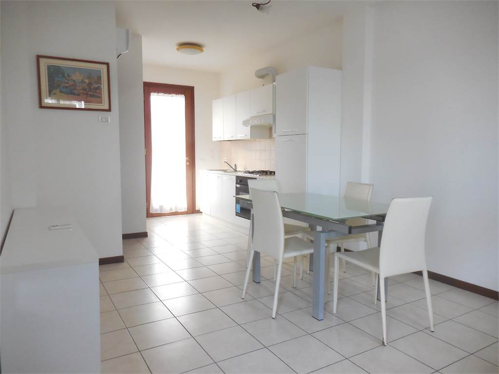 loc. Scomigo - Porzione di casa con ingresso indipendente disposta su 2 livelli. Al piano terra troviamo la cucina-soggiorno e un bagno; salendo al piano primo, travato a vista, troviamo una camera doppia, un bagno e uno studiolo. Comprensiva di arredi. Riscald. a metano, A/C; No garage e giardino.