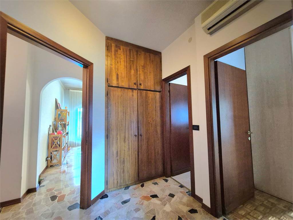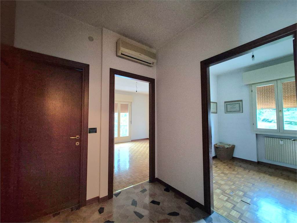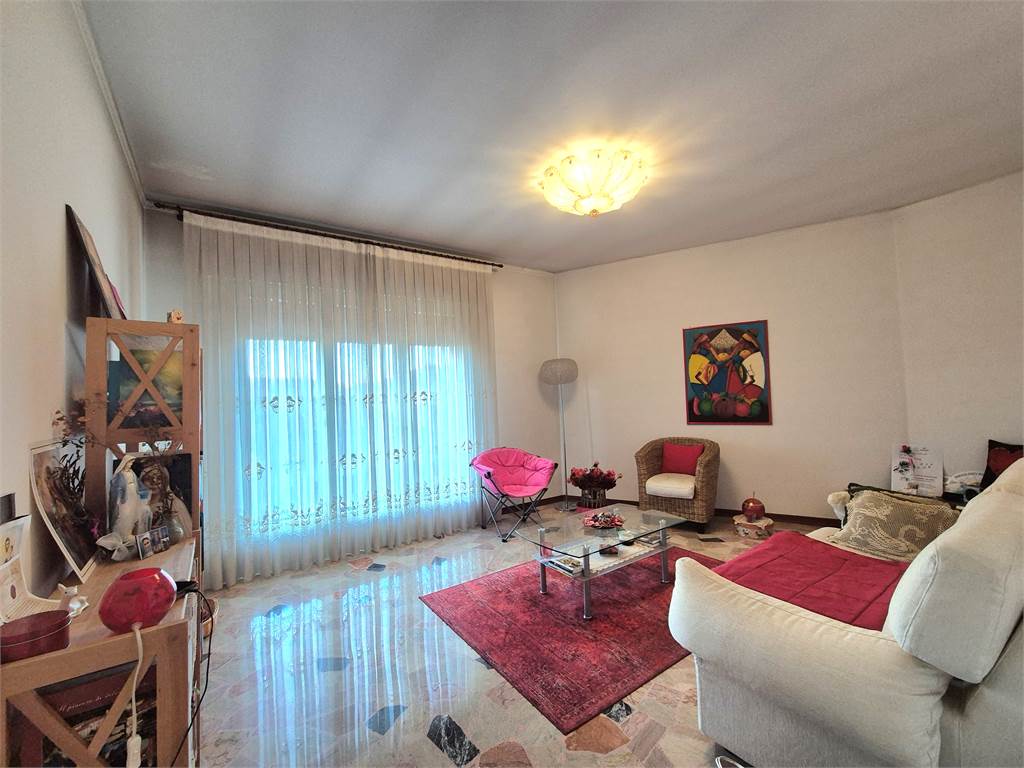 appartamento in zona semicentrale, luminoso, panoramico e ben tenuto, ristrutturato nel tempo, di 108 mq commerciali, al terzo e ultimo piano di palazzina con rampe di scale comode ma senza ascensore; composto di ingresso, cucina abitabile arredata, soggiorno, bagno rifatto, tre camere (due matrimoniali e una singola), due terrazzi, cantina capiente di mq.8 e posto auto al piano terra di circa 10 mq.. Riscaldamento centralizzato con conta chilocalorie